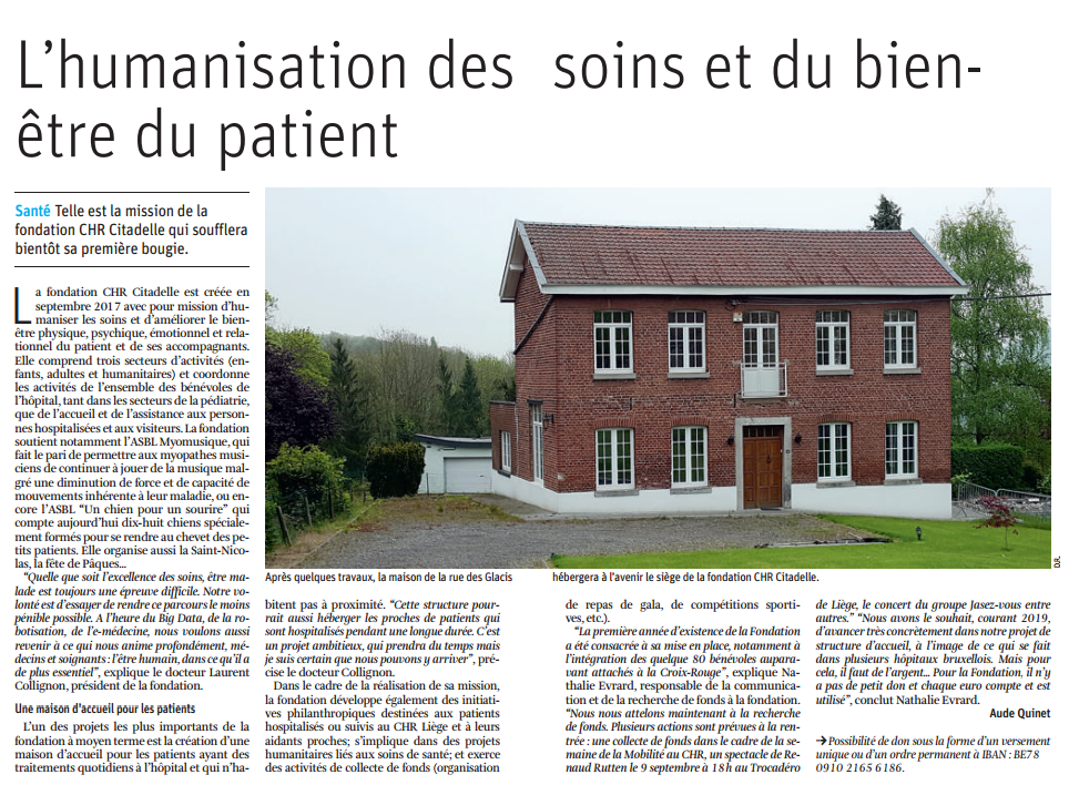 Article de La Libre (08/08/2018) - "L'humanisation des soins et du bien-être du patient"